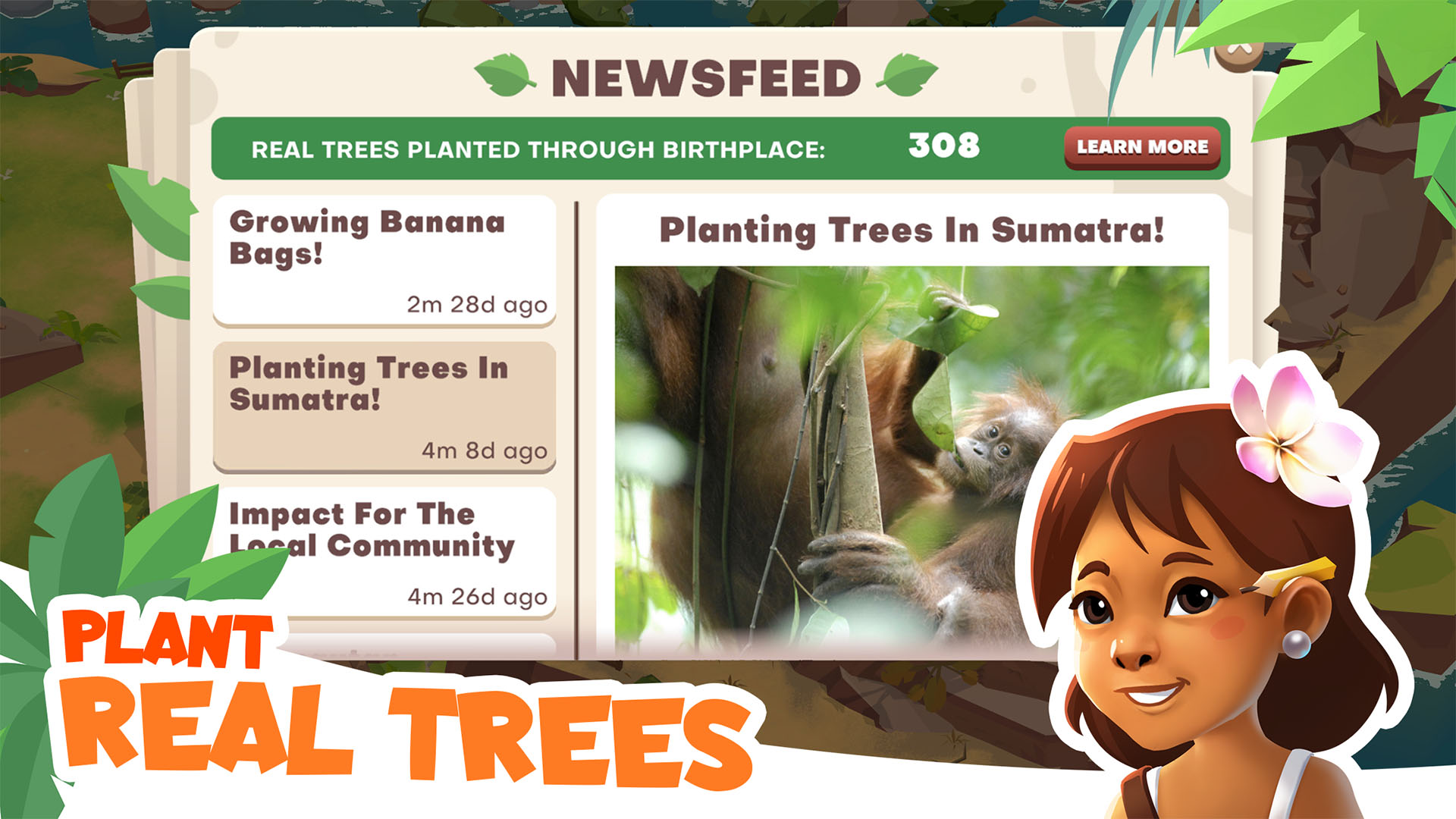 Jungle Heroes is a free to play mobile management game where you try to save the rainforest. The game donates a portion of it’s revenue to planting trees in Madagaskar and Indonesia.